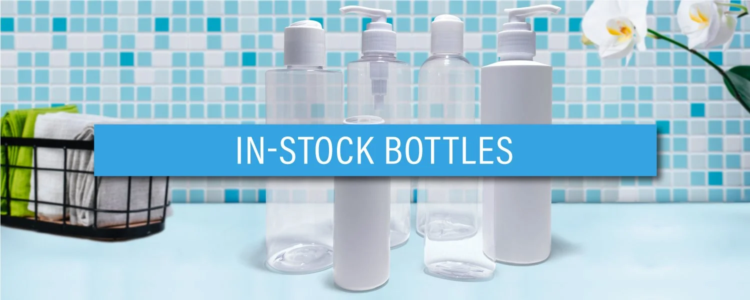 We have premium-quality bottles and closures in stock and ready to ship from our U.S. warehouse! Available in 2 oz. and 8 oz. sizes, in clear or white, with closures like disc caps, flip caps, and pumps—perfect for skincare, beauty, or hygiene products. All options are available upon request with a 15-30 day shipping time frame.